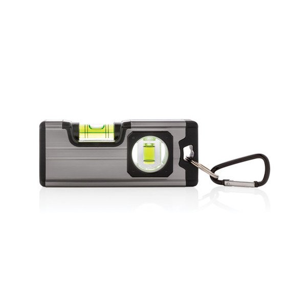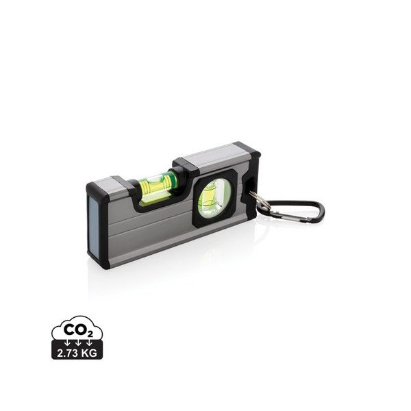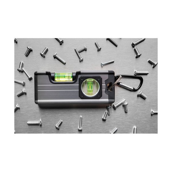 La regla viene con una base magnética para unirla a superficies metálicas. Con dos burbujas integradas para uso horizontal y vertical. Incluye mosquetón. Precisión de 0.5 mm.