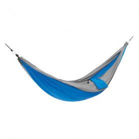 Hamaca ligera hecha de poliéster. Se incluyen correa y mosquetones para su montaje. Esta hamaca puede soportar hasta 200 kgs.