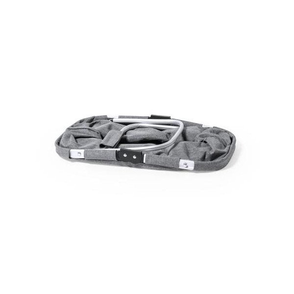 Con resistente estructura de aluminio y 2 asas de transporte plegables en aluminio, con cinta de velcro a juego. Bolsillo exterior con cierre de cremallera y etiqueta exterior con distintivo RPET.