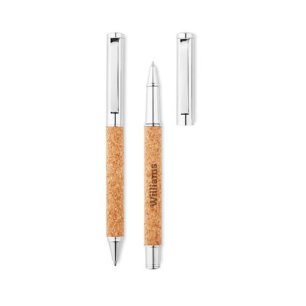 Set de bolígrafo y roller con cuerpo de corcho. Pedido mínimo: 50 udes.