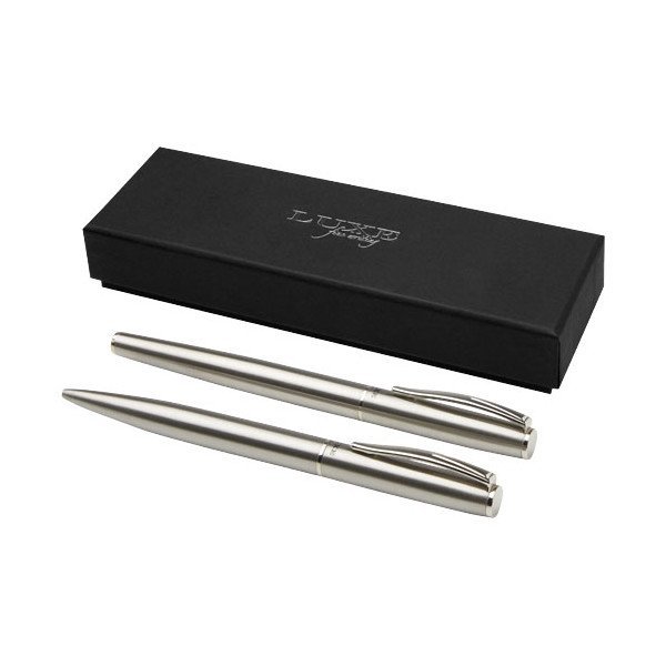 Set de bolígrafo y roller de acero inoxidable reciclado.Pedido mínimo: 50 udes.