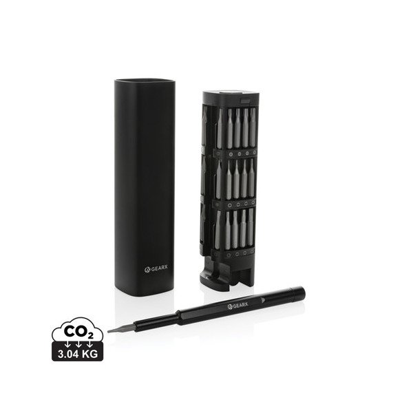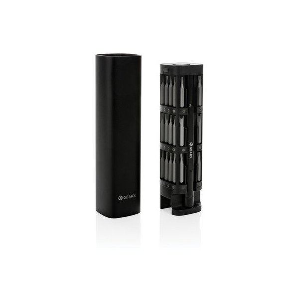 Set de destornilladores y accesorios de reparación de 30 piezas en caja de aluminio SCX.design T20.Pedido mínimo: 25 udes.