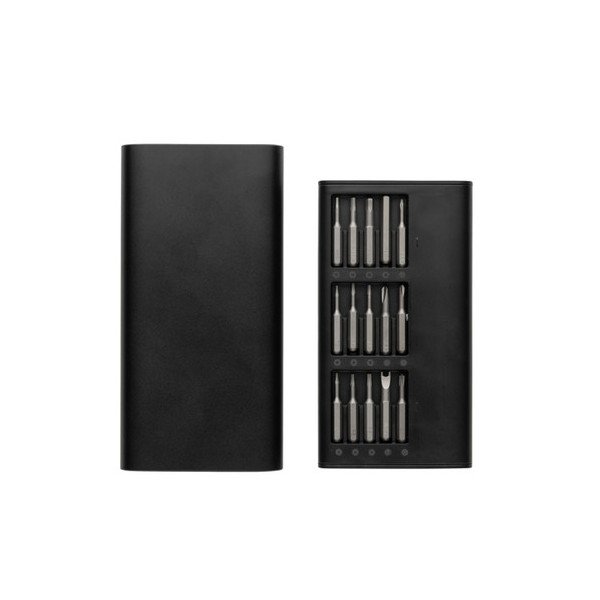 Set de herramientas de 25 accesorios en estuche de aluminio.Pedido mínimo: 50 udes.
