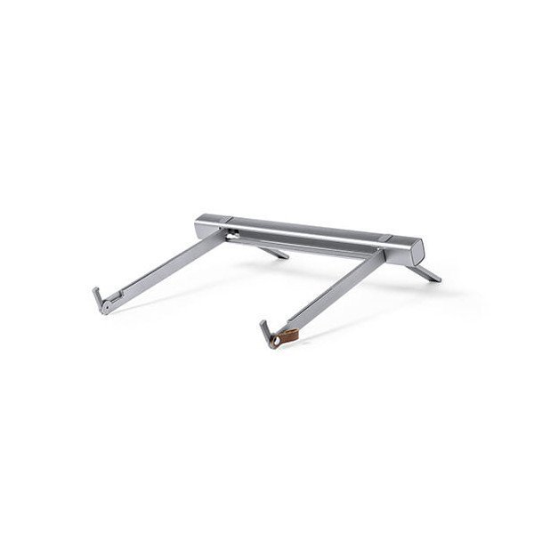 Fabricado en resistente aluminio, incluye patas extensibles y regulables en altura, con protecciones de goma para un firme ajuste al ordenador y al escritorio.