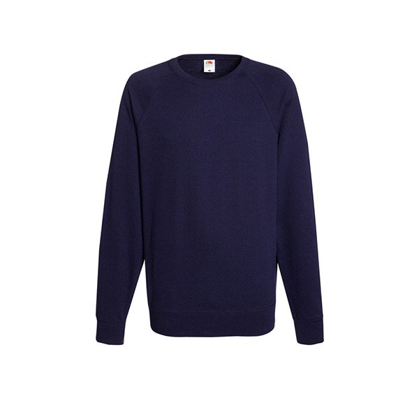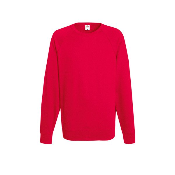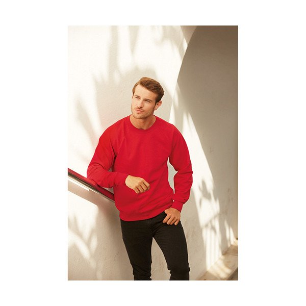 Sudadera 80% algodón hilo Belcoro, 20% poliéster. Sudadera ligera sin felpar. Manga raglán. Cuello, bajo y puño en canalé de algodón/Lycra. Producido usando hilo Belcoro para conseguir un tacto más suave y un proceso de impresión más limpio.