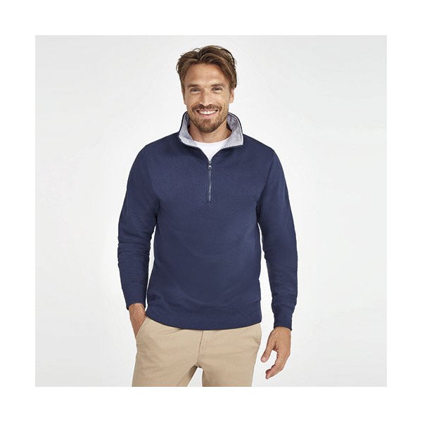 Único producto de la gama de sudaderas de SOL'S dotado de cuello con cremallera y bicolor. Corte y modelo intemporales.