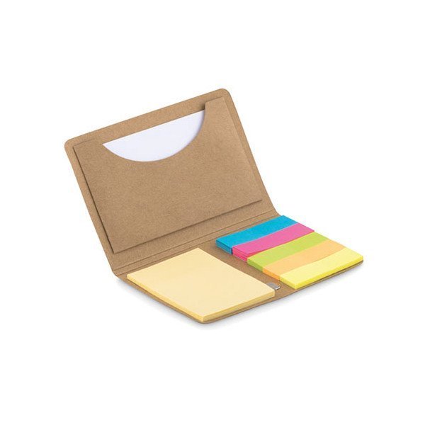 Tarjetero con bloc de notas y notas adhesivas en surtido de 5 colores.