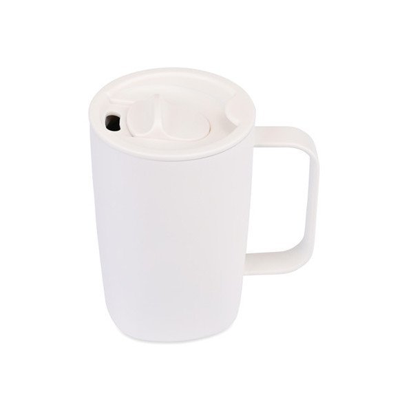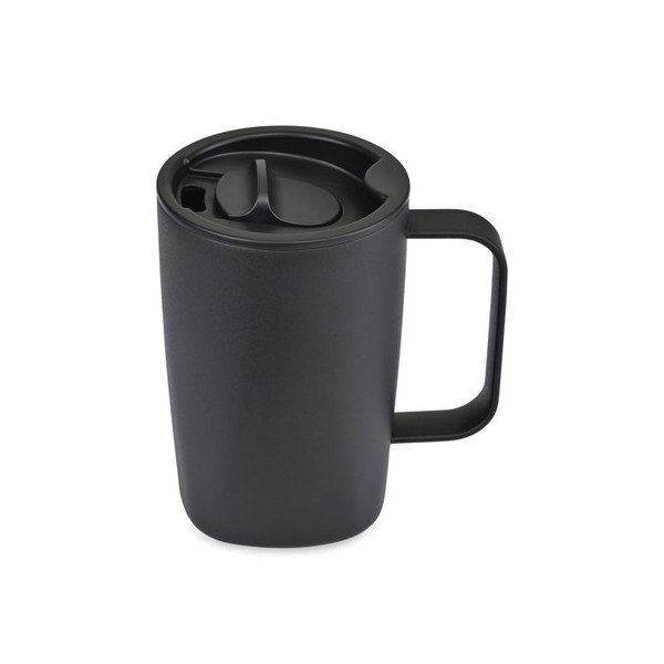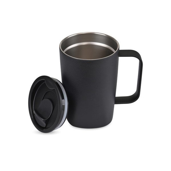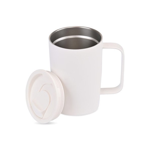 La taza de 450 ml con aislamiento al vacío de doble pared mantiene tus bebidas aisladas por más tiempo.